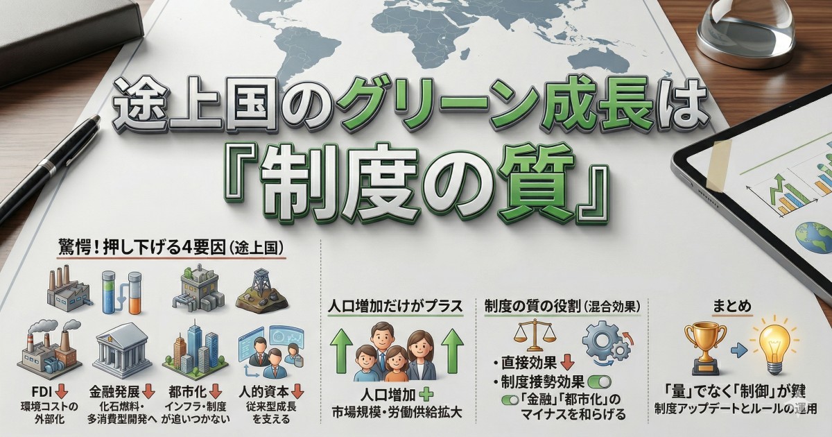 論文は「成長と持続可能性のバランス:資源国のためのグリーンファイナンスと再生可能エネルギーへの道筋」です。38カ国の資源国の20年以上のデータを分析し、「グリーンファイナンス」と「再生可能エネルギー」の経済成長への有効性を確かめてくれました。